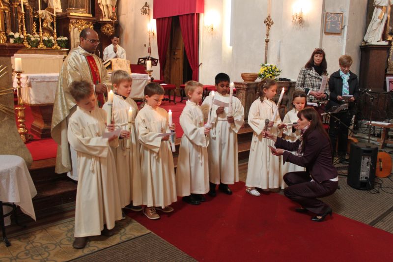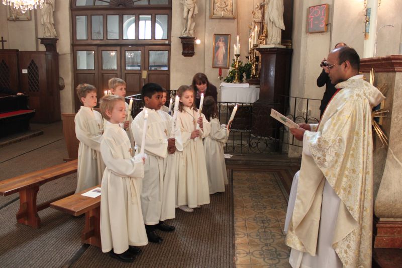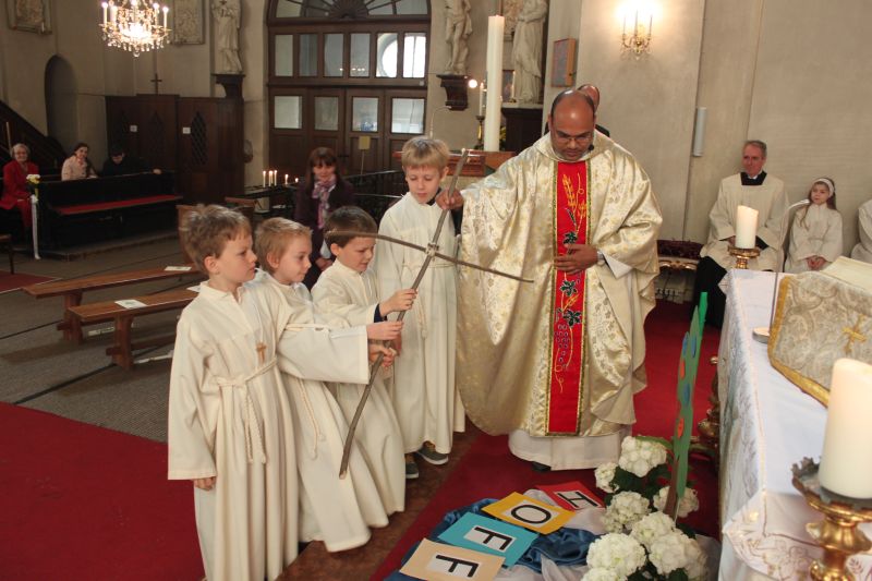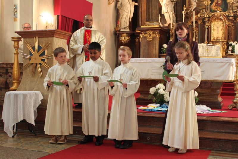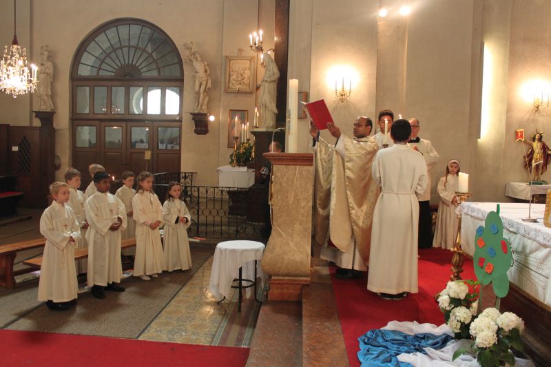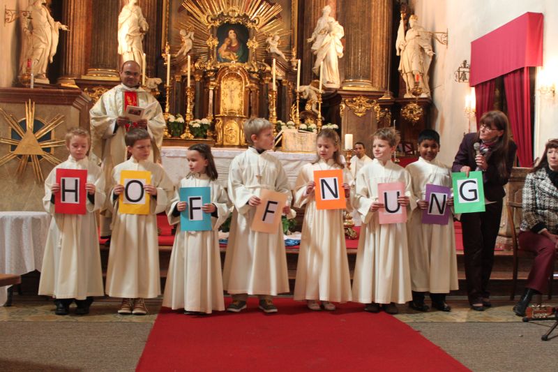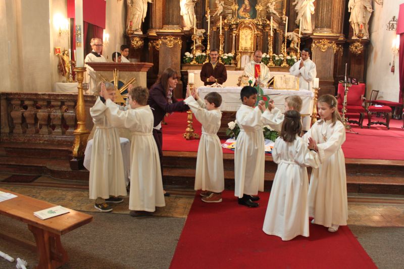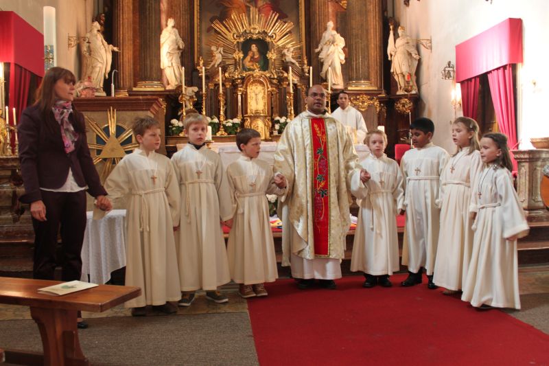 Seit Oktober vorigen Jahres haben sich unsere sieben Kinder auf die Erstkommunion vorbereitet. Die Vorbereitung stand unter dem Thema „Baum des Lebens“. Am 17. Mai haben dann die Kinder zum ersten Mal die Hl. Kommunion empfangen. Hier sind einige Fotos der Erstkommunionfeier.