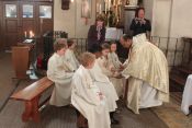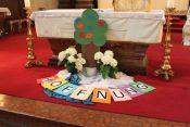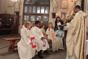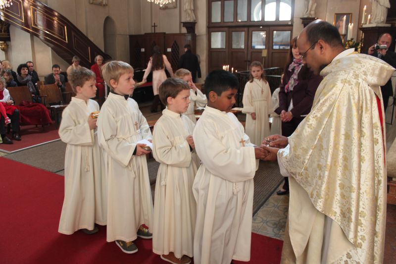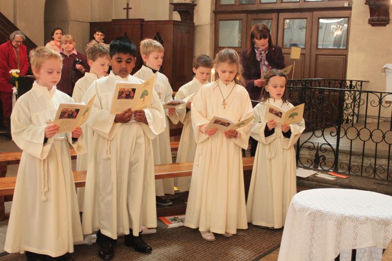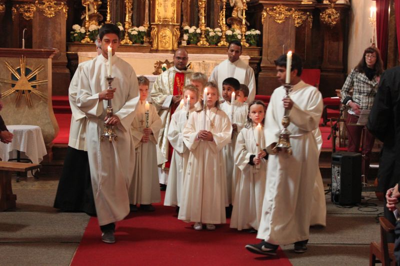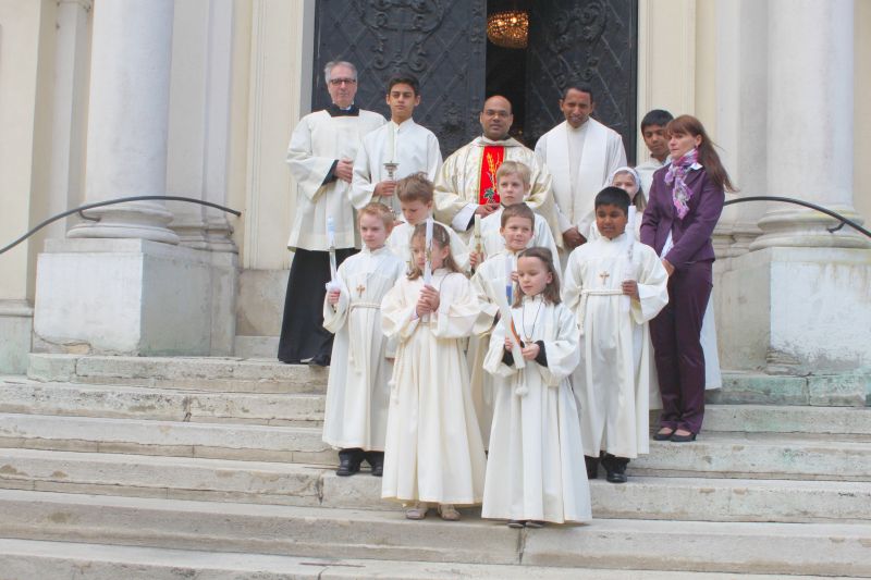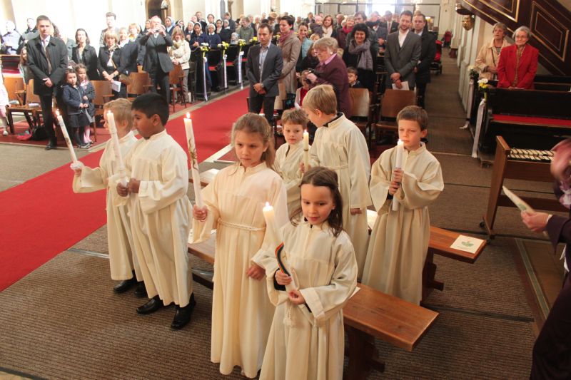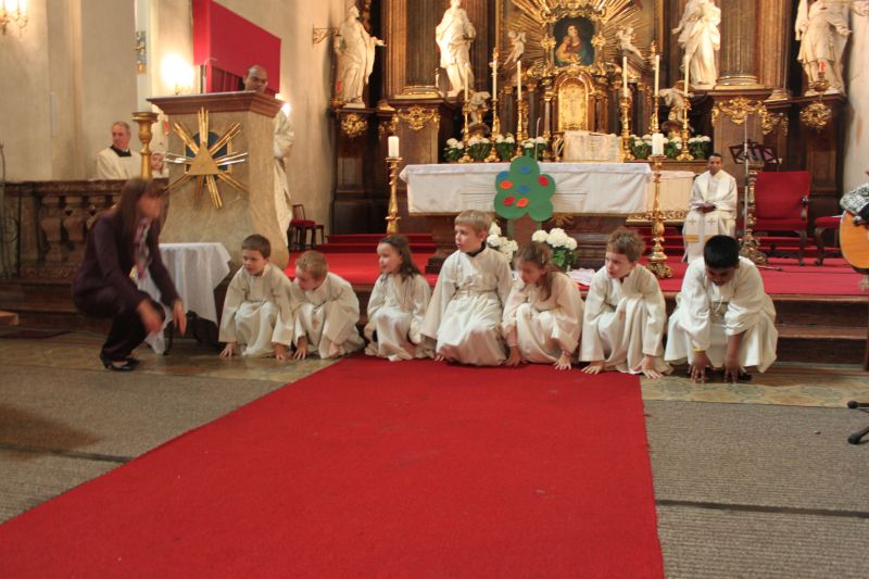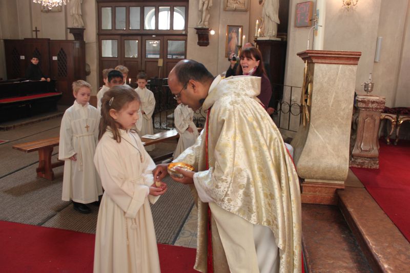 Seit Oktober vorigen Jahres haben sich unsere sieben Kinder auf die Erstkommunion vorbereitet. Die Vorbereitung stand unter dem Thema „Baum des Lebens“. Am 17. Mai haben dann die Kinder zum ersten Mal die Hl. Kommunion empfangen. Hier sind einige Fotos der Erstkommunionfeier.